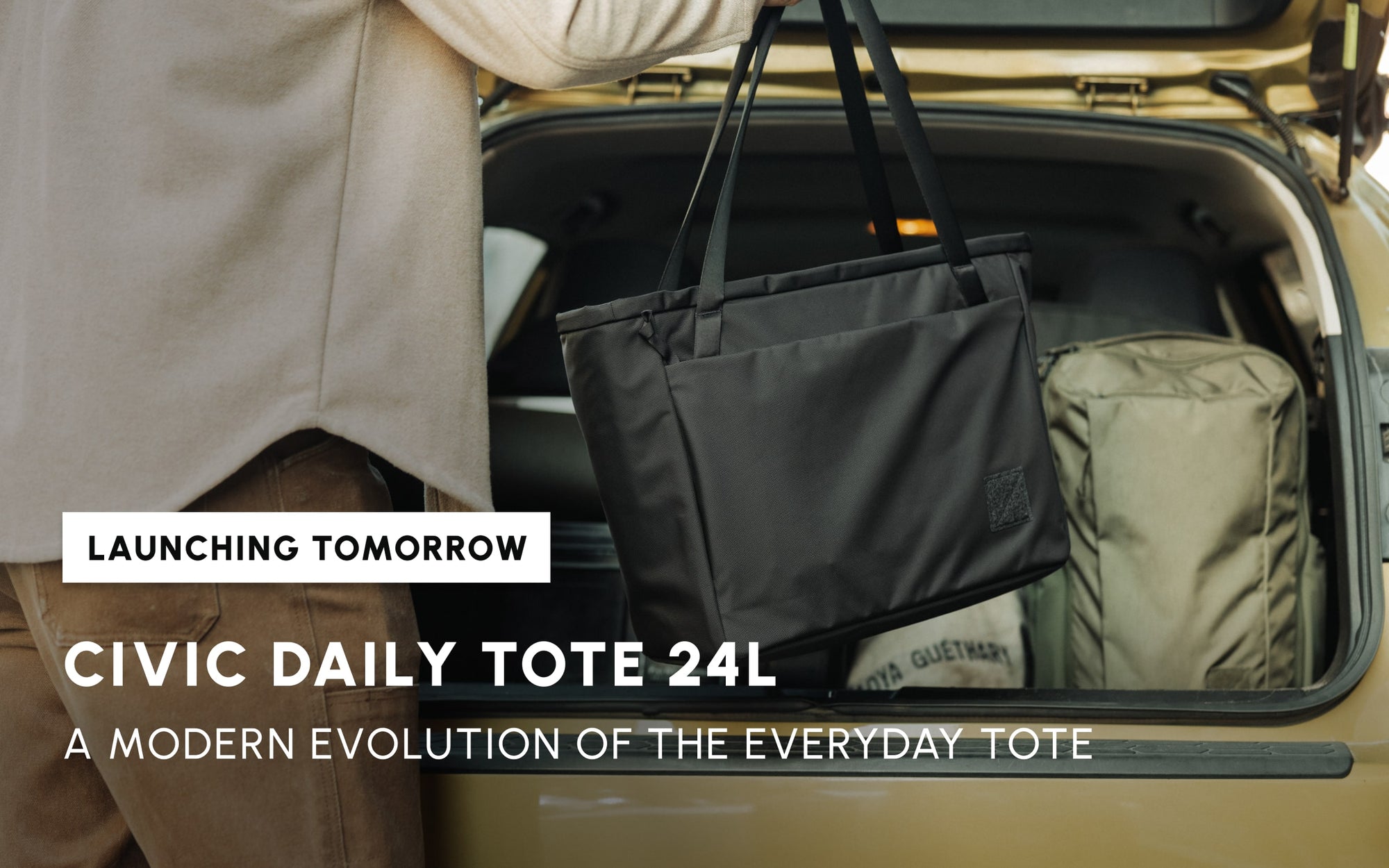 CIVIC Daily Tote 24L launches tomorrow at 8am MDT on our site.