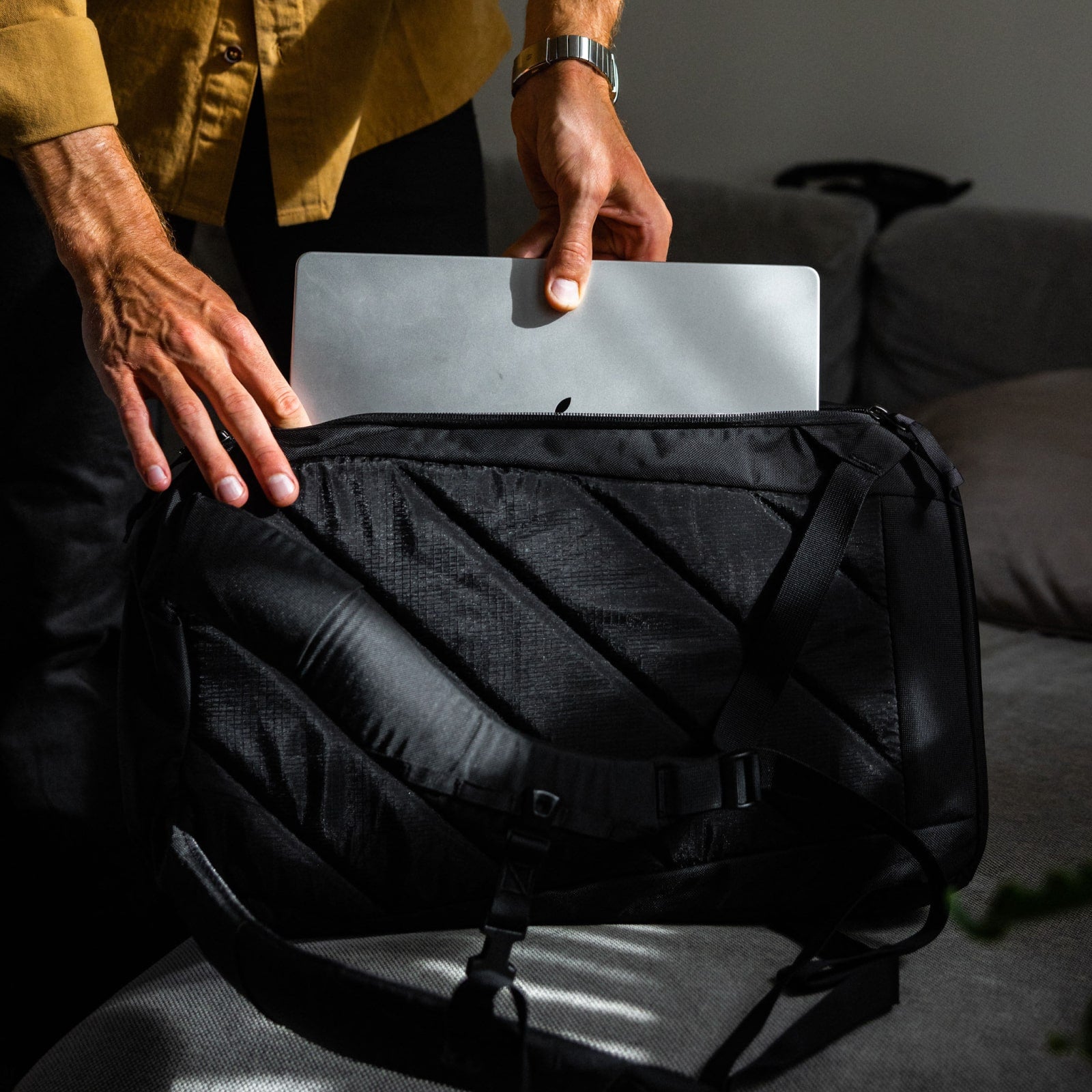 The internal laptop compartment is padded and suspended, keeping your tech safe. Paired with our ergonomic harness and 3D patterning, CPL is exceptionally comfortable even with a laptop inside.