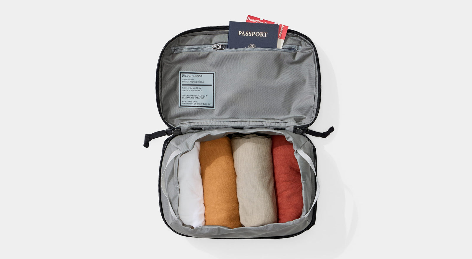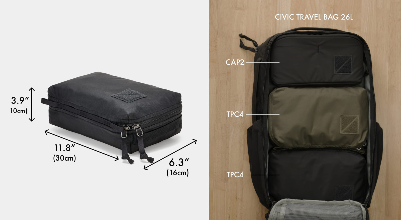 TPC4 is our newest packing cube, designed for tees, basics, or gear for an organized life on the go. With a unique compression cinch collar, it is built to be overstuffed and packed down. A slim security pocket lies on the interior for stashing passports, laundry bags, or other travel essentials. Designed with a durable yet lightweight textile for dual purpose as both a packing cube and a gear cube.