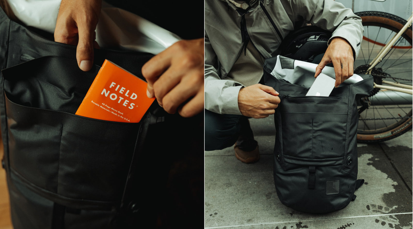The main cavity opens wide, is light-colored for better visibility, and offers a large, versatile volume for all your daily carry needs. Inside is a low-profile padded laptop sleeve and a smaller tablet sleeve. The stretch fabric of the sleeve hugs the back of the bag so it is out of the way when you don’t need it.